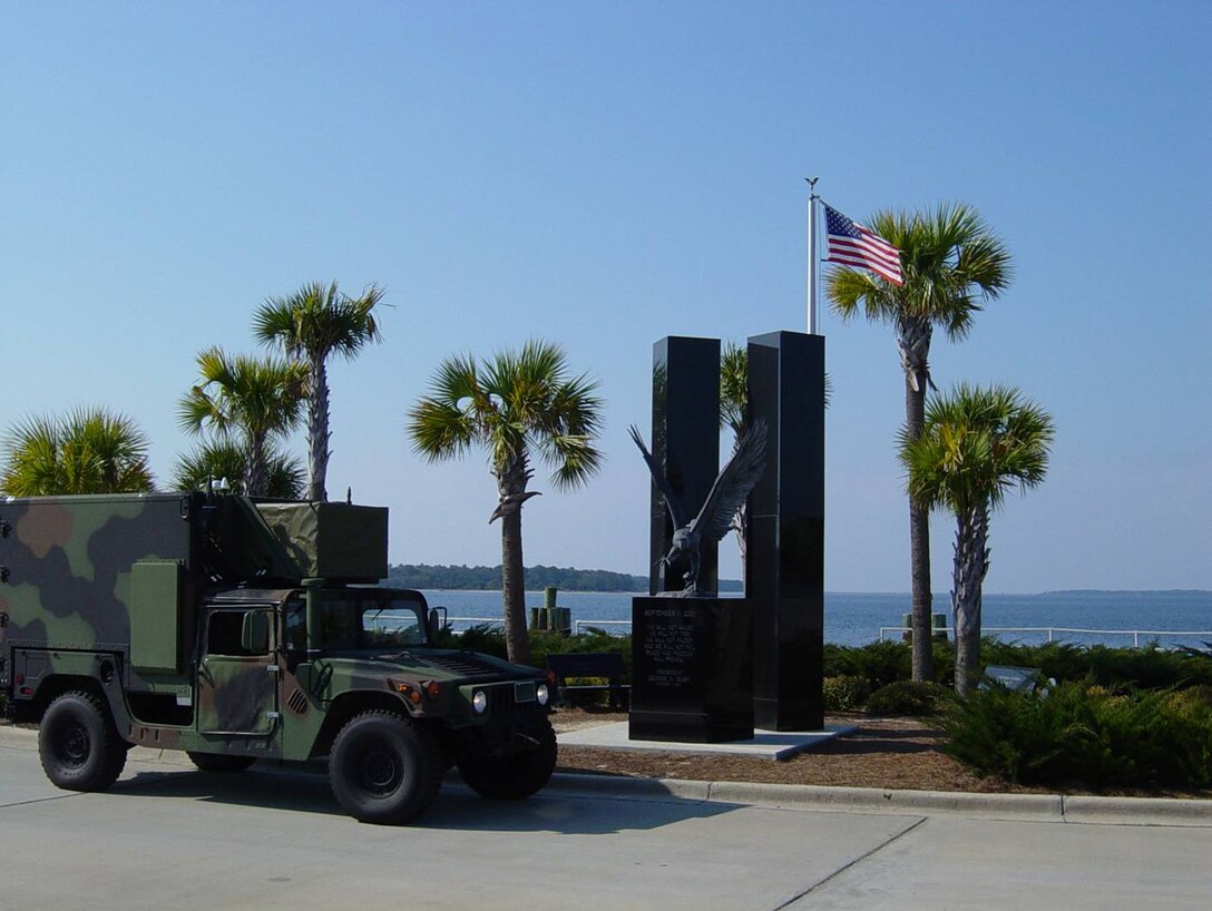 The Joint Based Expeditionary Connectivity Center (JBECC) parked next to Bay County's 9-11 memorial.